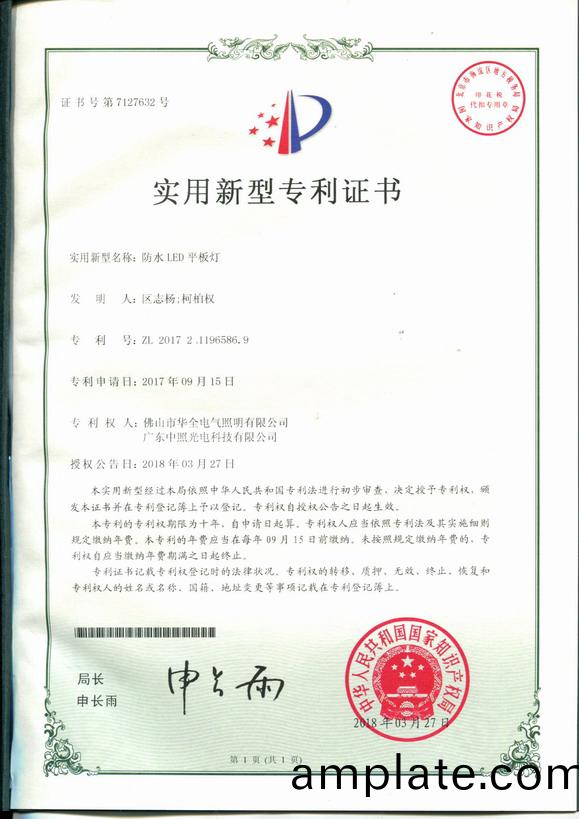 實用(yong)性(xing)專利(li):防(fang)水LED平(ping)闆燈(deng)