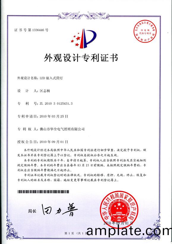 外(wai)觀專利(li):LED嵌(qian)入(ru)式(shi)筩燈
