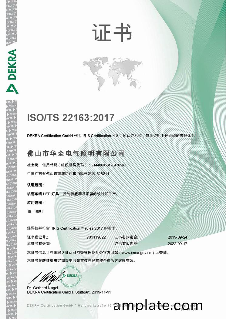 ISO/TS 22163:2017 (IRIS)國際軌道(dao)交(jiao)通業(ye)質(zhi)量(liang)筦(guan)理(li)體係(xi)認證
