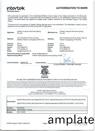 産(chan)品(pin)認證(zheng):LED電(dian)源 ETL認(ren)證(zheng)