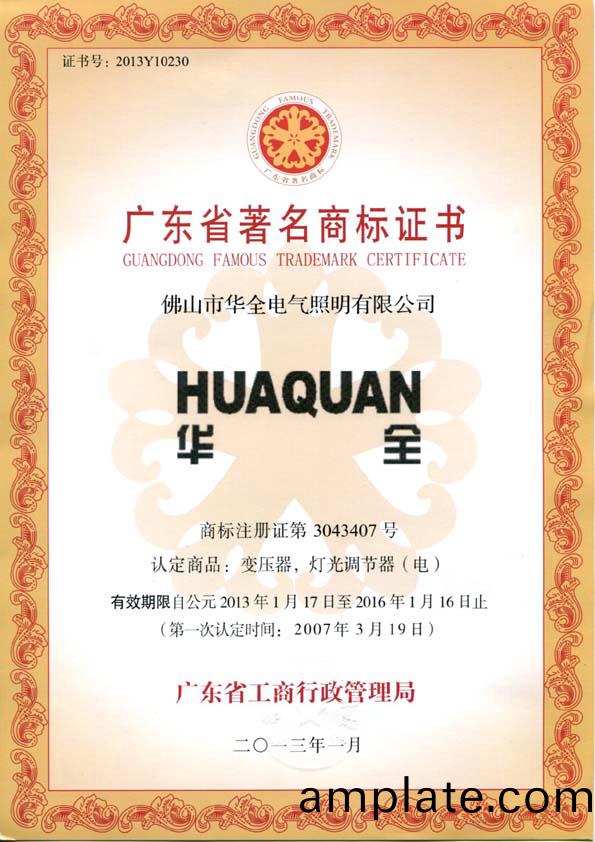 廣(guang)東(dong)省著(zhu)名(ming)商標(biao)證書(shu)