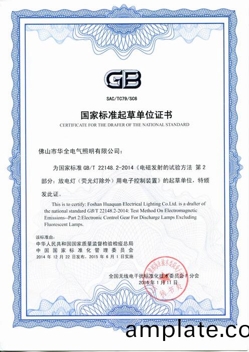 國傢(jia)標(biao)準起草(cao)單(dan)位(wei)證(zheng)書