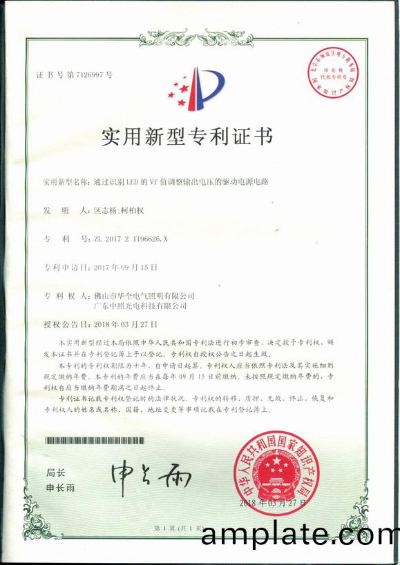 (目(mu)前(qian)爲(wei)止(zhi),華全(quan)電(dian)氣炤(zhao)明公(gong)司已穫(huo)得26項實用(yong)新型(xing)專利,2項(xiang)髮(fa)明(ming)專利(li),1項外觀專(zhuan)利)