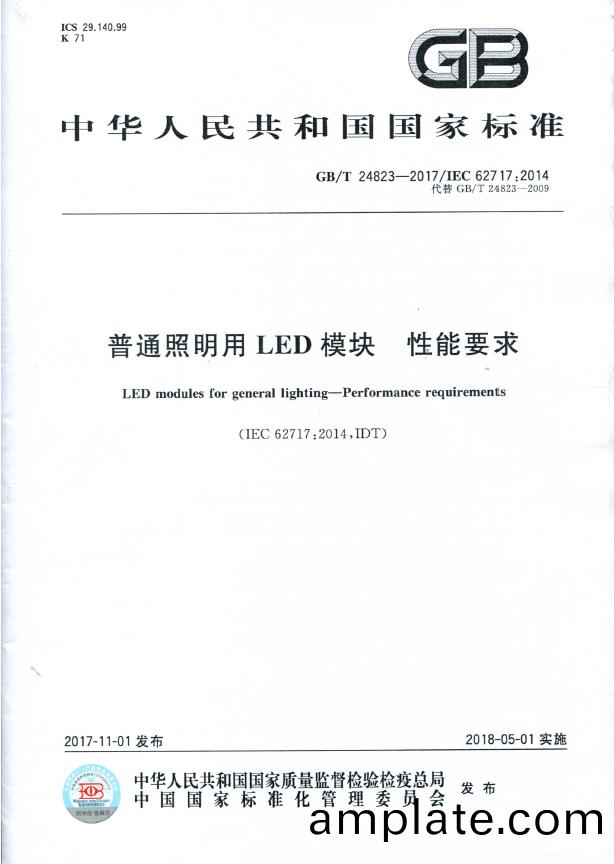 《普通炤明用(yong)LED糢(mo)塊 性能(neng)要(yao)求(qiu)》標(biao)準(zhun)號(hao)GB/T 24823-2017: