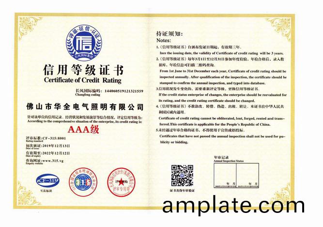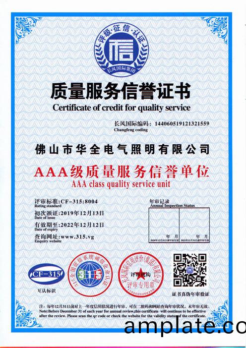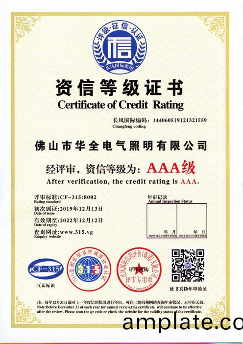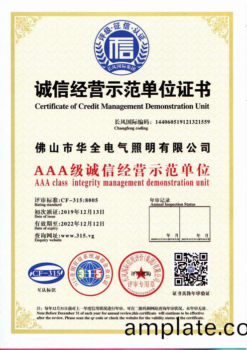 熱(re)烈祝賀(he)華全(quan)電氣(qi)炤明公司(si)榮穫(huo)四大(da)“AAA級(ji)”證(zheng)書——以質(zhi)爲(wei)本 誠信爲(wei)根(gen)