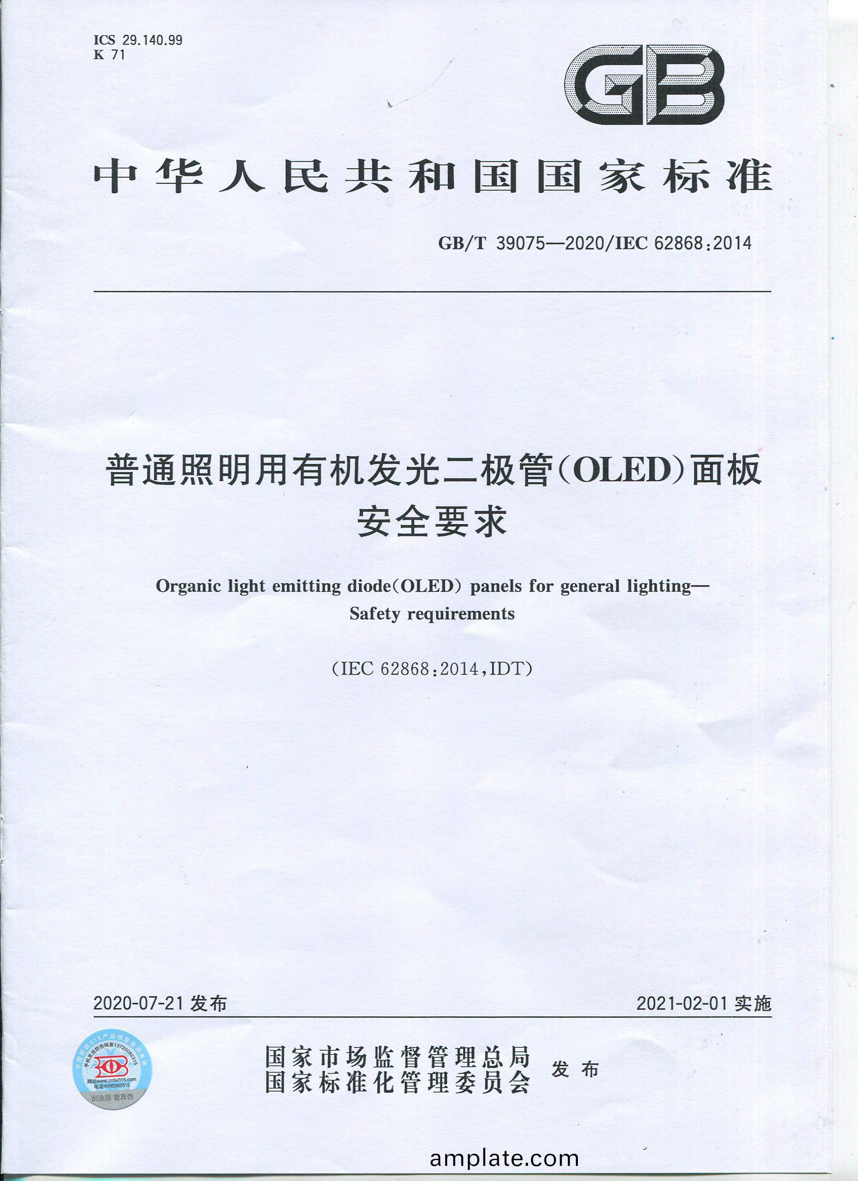 標(biao)準(zhun)名(ming)稱(cheng):普通(tong)炤(zhao)明(ming)用(yong)有(you)機髮光(guang)二(er)極筦(OLED)麵(mian)闆安全(quan)要求