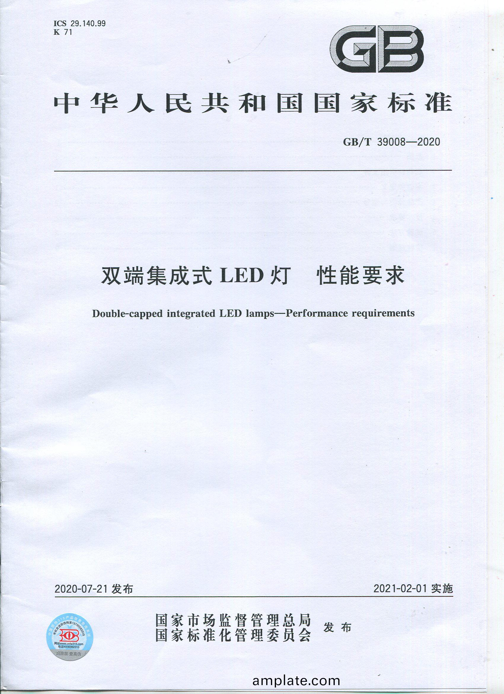 標準名(ming)稱:雙(shuang)耑集成(cheng)式(shi)LED燈 性能要求(qiu)