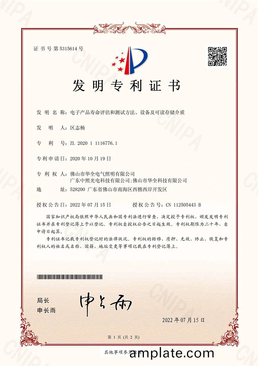 祝賀(he)華(hua)全(quan)榮(rong)穫(huo)“電子産品夀命評估”髮(fa)明專(zhuan)利(li)