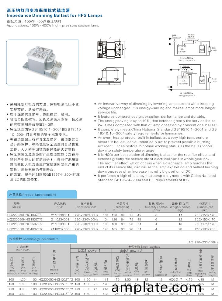 220-230V 100-400W高壓鈉(na)燈(deng)用
