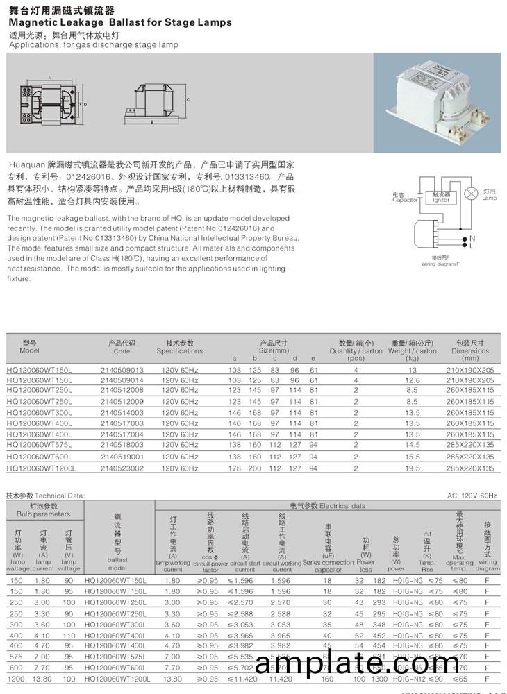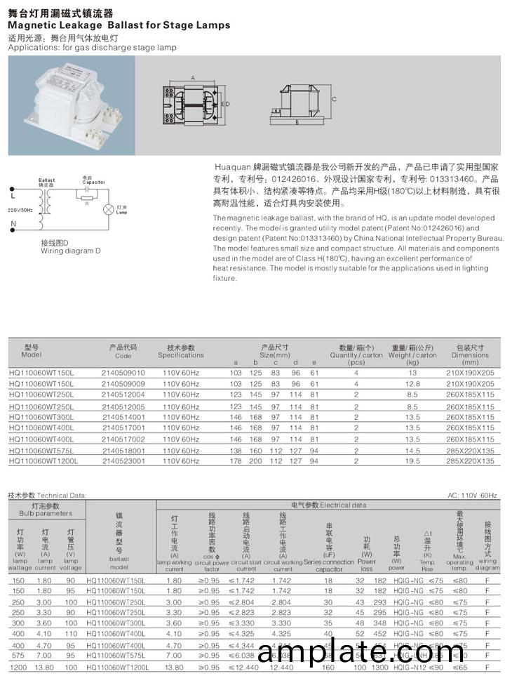 Huaquan牌(pai)漏(lou)磁(ci)式鎮流器具有産品體積(ji)小(xiao),結(jie)構(gou)緊(jin)湊等特點(dian)。