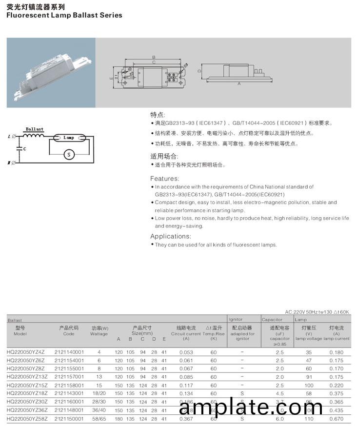 - 特性: 1.滿(man)足(zu)GB19510.9-2004(IEC61347),GB/T14044-2005(IEC60921)