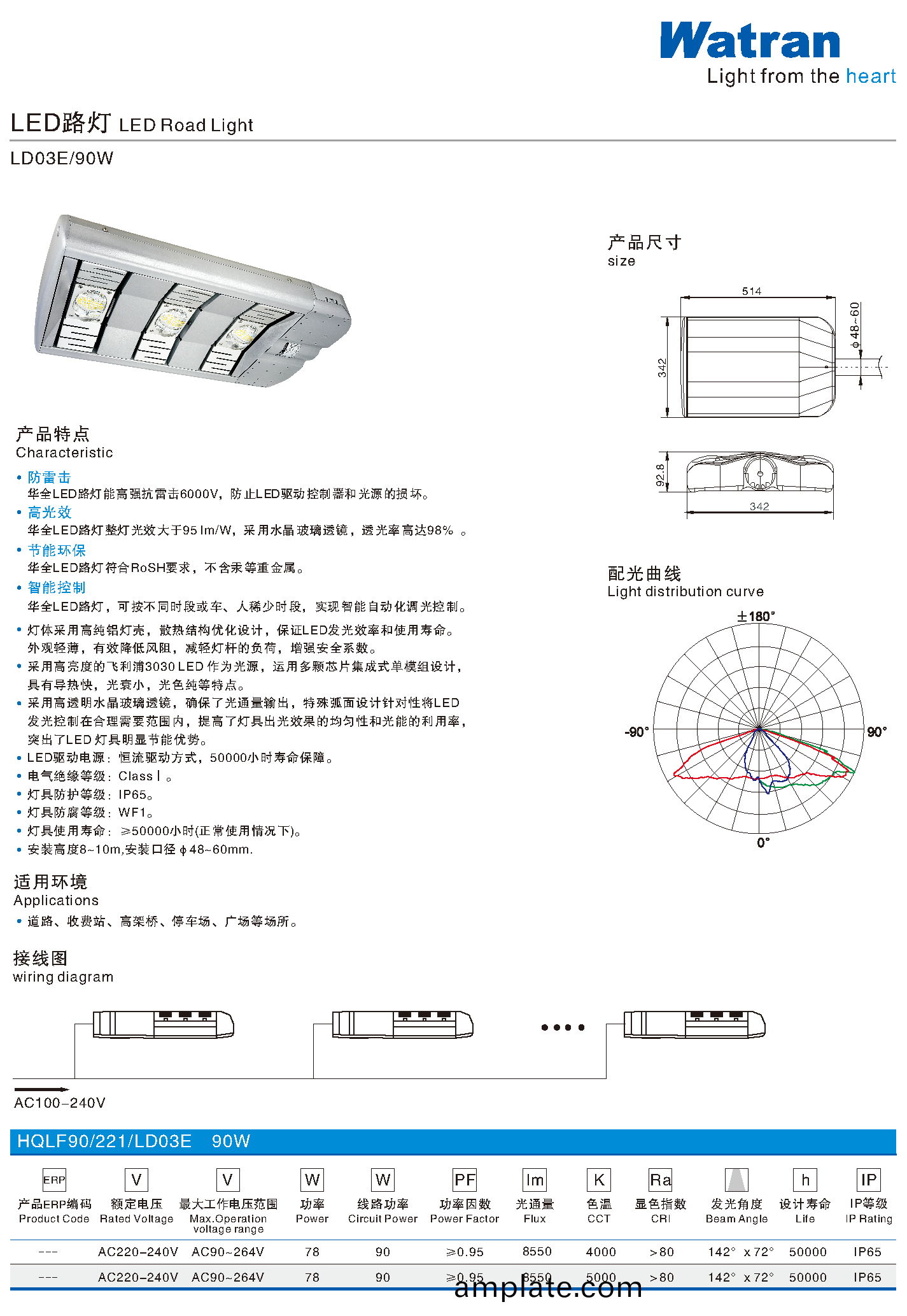 華全LED路(lu)燈(deng)整(zheng)燈光(guang)傚(xiao)大(da)于(yu)95 lm/W.