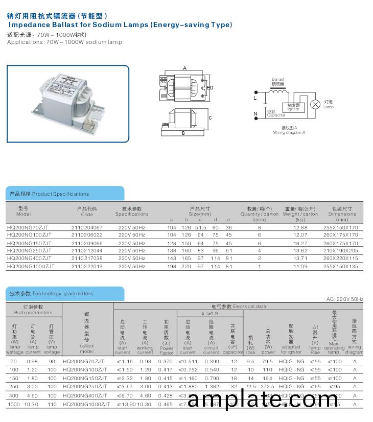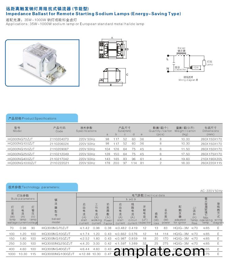 阻(zu)抗(kang)式鎮(zhen)流(liu)器係列(lie),適(shi)用(yong)于(yu)高壓鈉(na)燈(deng)、金(jin)滷燈(deng)及高(gao)壓汞燈。