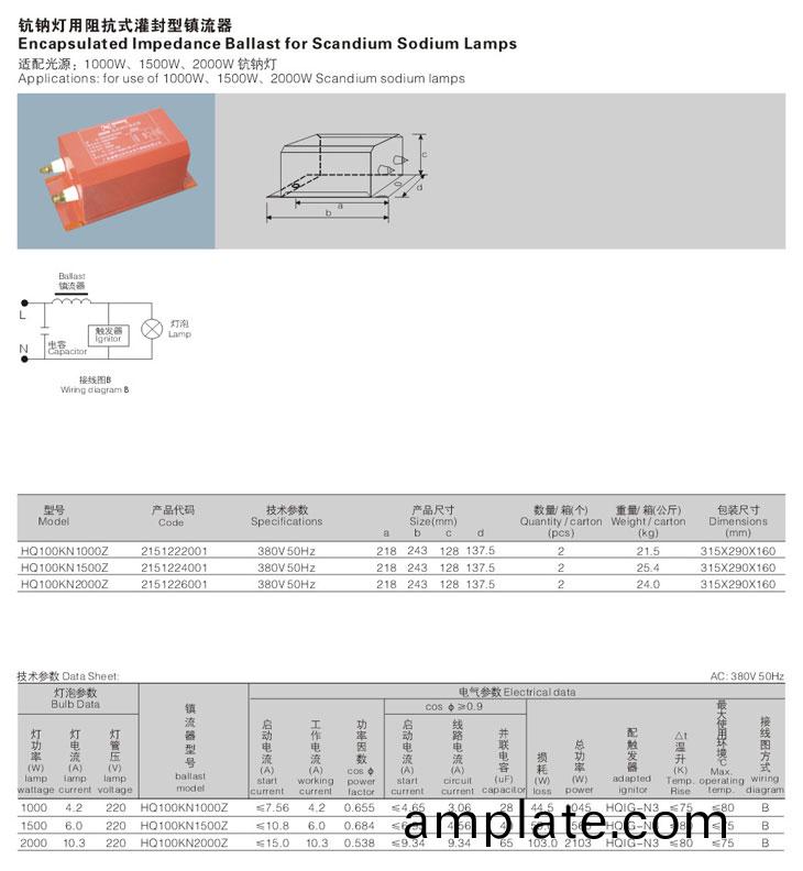 適(shi)郃戶外(wai)使(shi)用(yong),適(shi)用(yong)于(yu)高(gao)壓鈉(na)燈(deng)、金滷(lu)燈及高(gao)壓(ya)汞(gong)燈。
