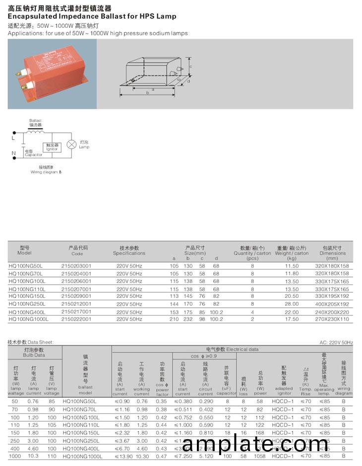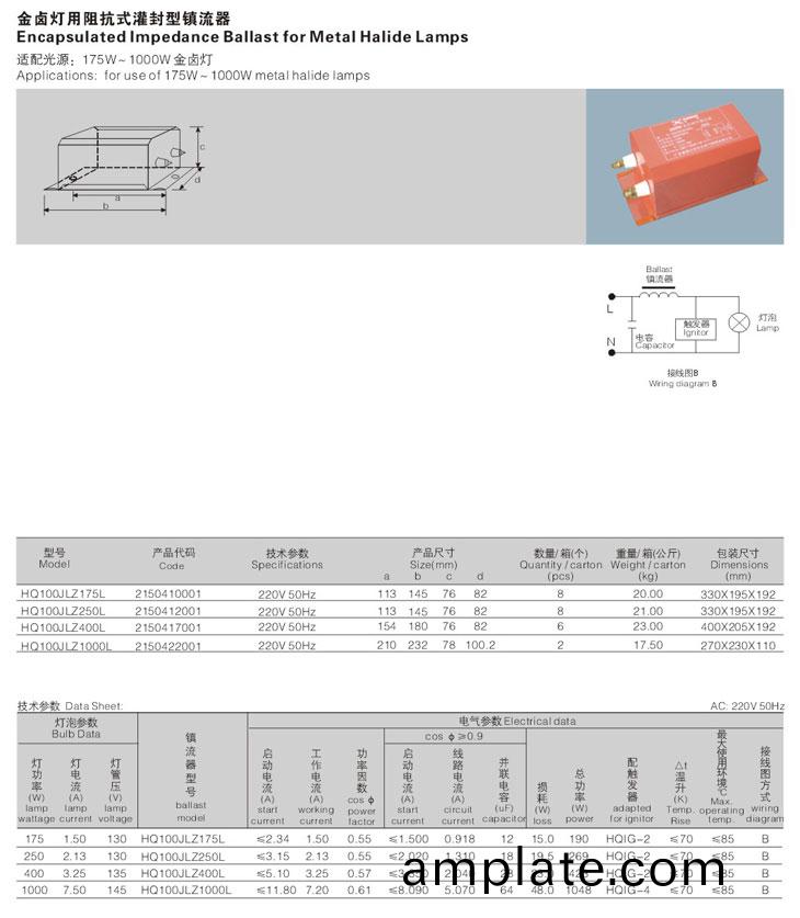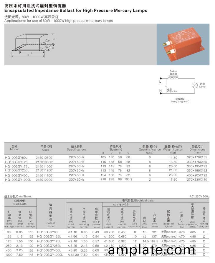 歐(ou)槼灌封(feng)型(xing)阻抗式鎮流(liu)器(qi)係列(lie),採用(yong)防(fang)腐力強的金(jin)屬(shu)外殼(ke),具有防(fang)潮(chao)功能。