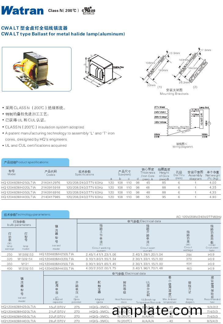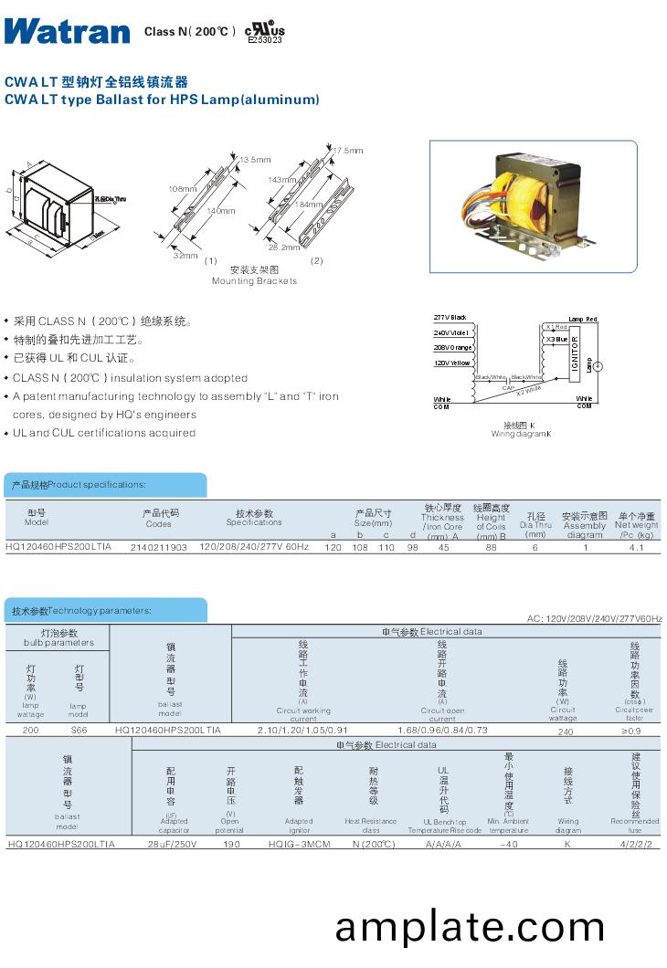 鋁(lv)線120/208/240/277V 60Hz