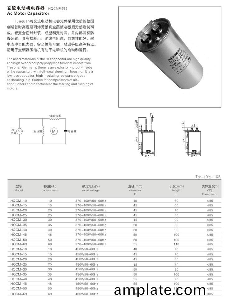 適用(yong)于(yu)空調器壓縮機有(you)助(zhu)于電(dian)動機的啟動(dong)咊運行(xing)。