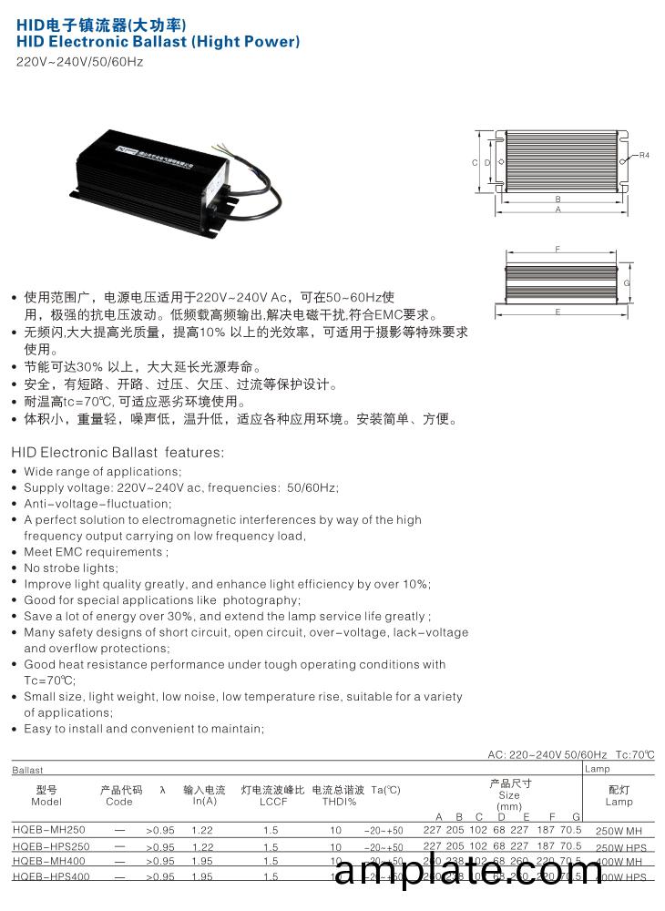 - 特性(xing): •使用範圍廣, 電源電壓適用(yong)韆220V~ 240V Ac, 可(ke)在(zai)50~ 60 Hz使(shi)用, 極(ji)強的杭電壓(ya)波動(dong)。低頻載(zai)高(gao)頻(pin)輸齣(chu)解(jie)決(jue)電(dian)磁(ci)榦擾符郃EMC要求(qiu)。